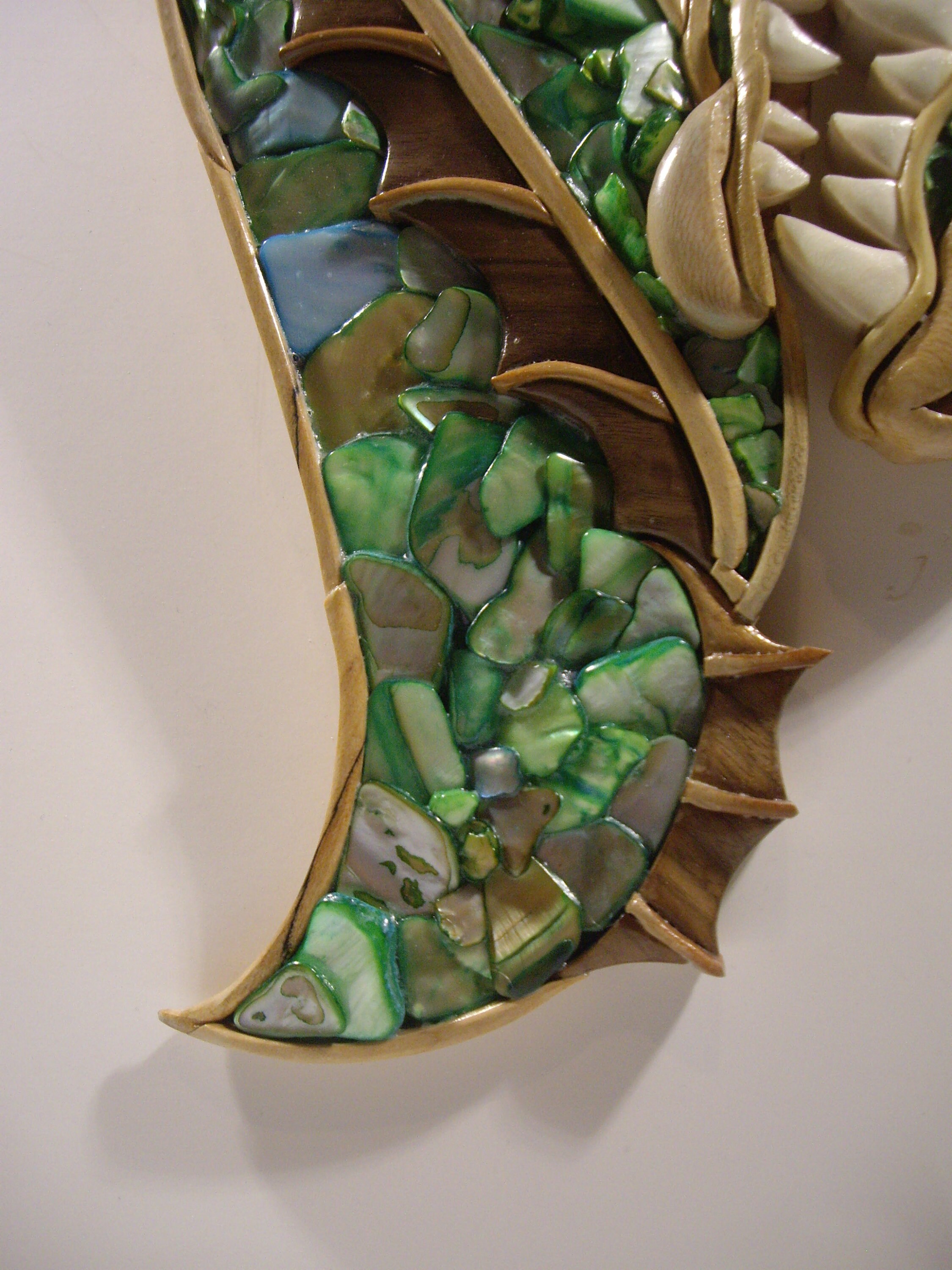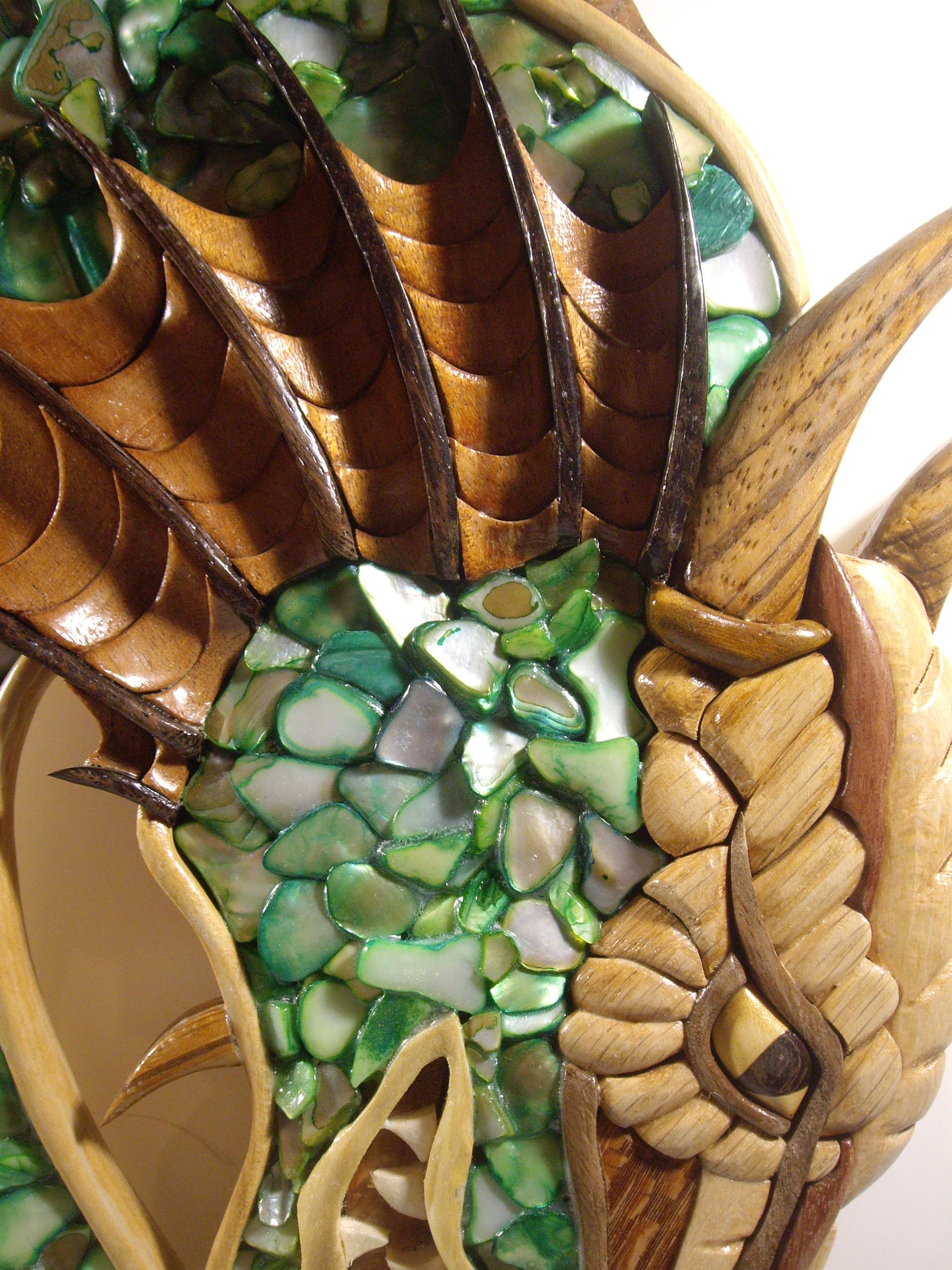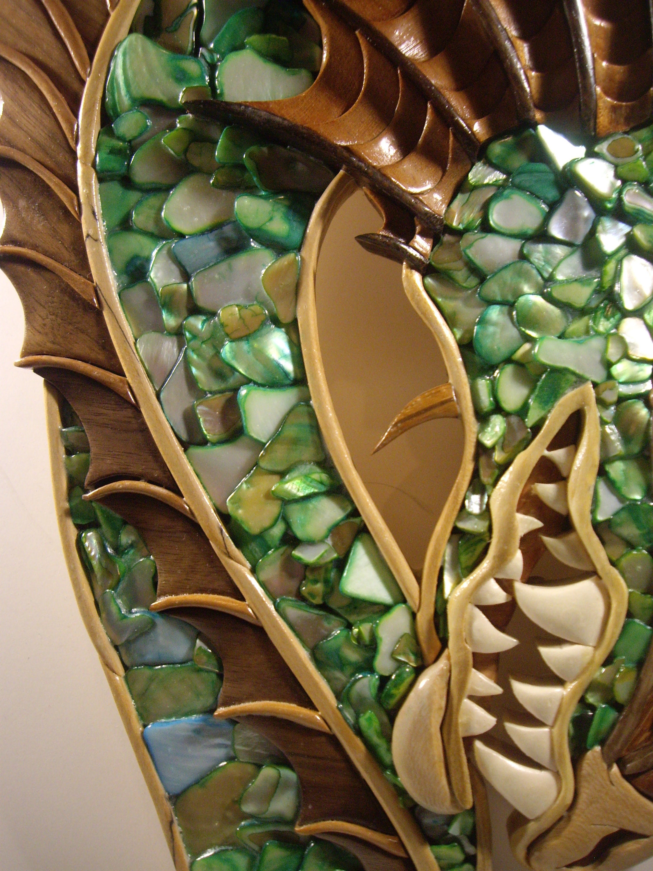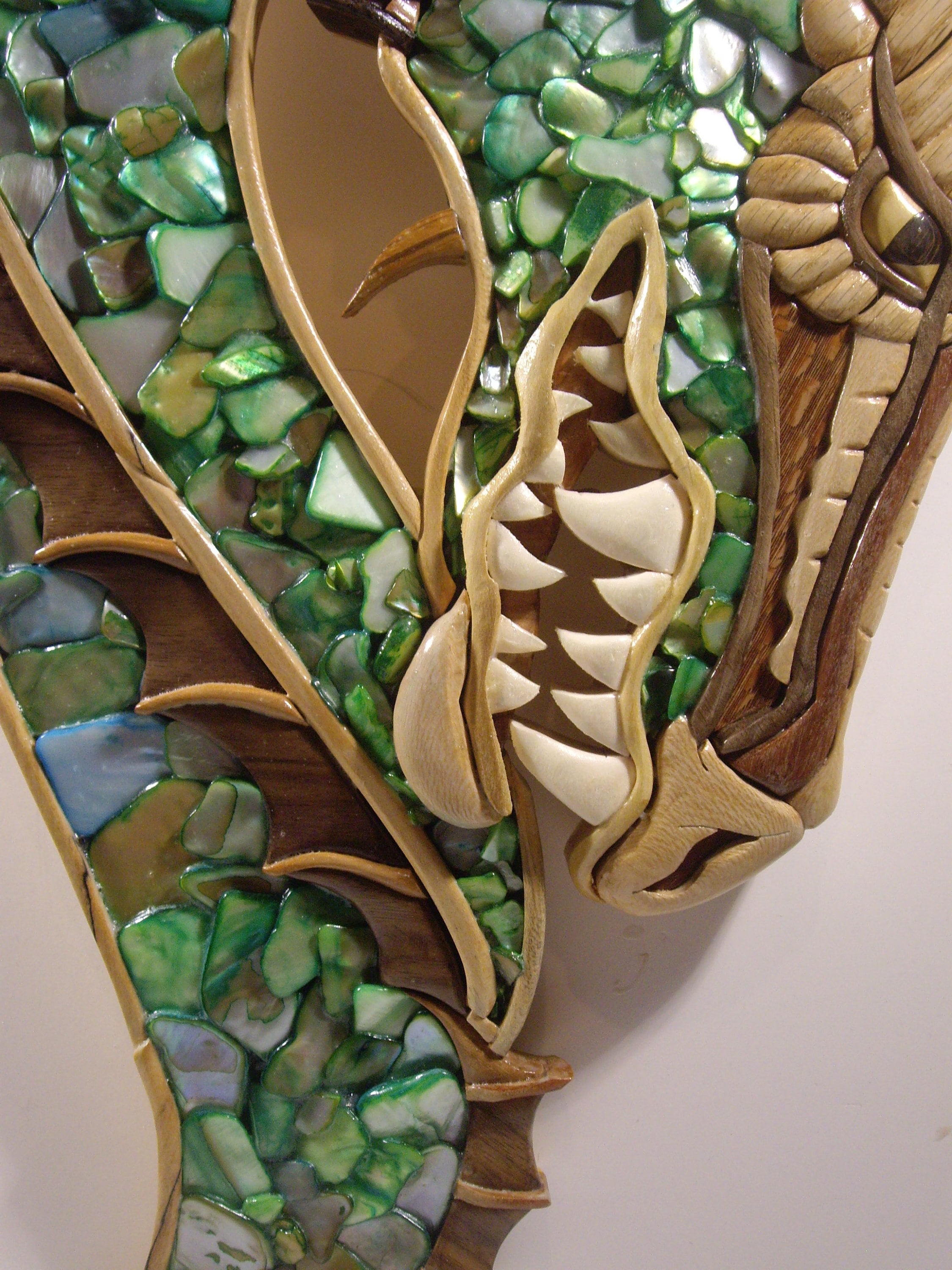Intarsia Fantasy Dragon Head is cut in uneven thicknesses then fitted together to obtain a 3D look. Either paired with some of your other favorite pieces or hung on its own, this piece will make a statement, not to mention start a conversation!